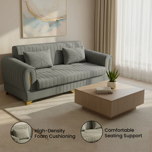 Bring home style, comfort, and durability with the Bharat Lifestyle Vista Velvet Fabric 3 Seater Sofa in a sophisticated grey color. Designed for modern homes, it offers plush cushions, soft velvet upholstery, and a sturdy frame for daily use, family time, or hosting guests.